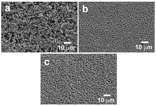 Representative FESEM images of sample surfaces are shown in Figure 5. As it can be seen in these micrographs, classically prepared samples show the coexistence of very large and small grains (Figure 5a). Moreover, they display much larger mean grain sizes than those prepared from attrition-milled precursors, independently of the sintering time (Figure 5b,c). This difference is due to the smaller precursors grain sizes processed through the attrition milling, as previously shown. Furthermore, samples prepared using attrition-milled precursors show very homogeneous grain sizes, and they are slightly larger when the sintering time is increased. Finally, these samples seem to have a lower porosity than the classically prepared ones, further decreasing when the sintering time is raised.