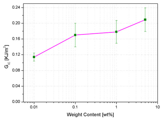 Epoxy resins are brittle in nature [5], and their poor impact resistance limits their use in advanced applications for which a high toughness is required, such as adhesives and fiber-reinforced polymers for aerospace [6,7]. In order to enhance their fracture toughness, fillers with different typologies have been employed, such as rubber particles [8], inorganic nanoparticles [9], carbon nanotubes [10], and hyperbranched polymers [11,12]. All these filler categories have the potential to increase the toughness of epoxy resins, though they might compromise the strength to varying degrees.