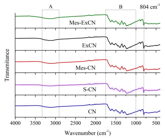 Fourier transform infrared spectroscopy (FTIR)-ATR spectra of CN-based nanomaterials.