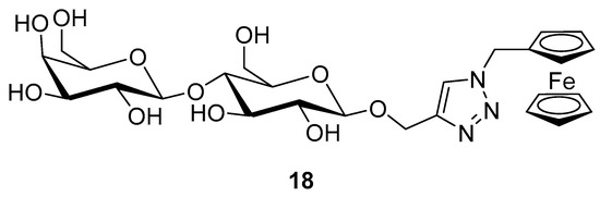 31. Casas-Solvas, J.M.; Vargas-Berenguel, A.; Capitán-Vallvey, L.F.; Santoyo-González, F. Convenient methods for the synthesis of ferrocene-carbohydrate conjugates. Org. Lett. 2004, 6, 3687–3690. [Google Scholar] [CrossRef] [PubMed]