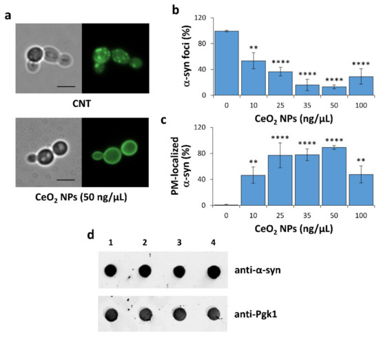 3.1. CeO2 NPs Counteract α-syn-induced Toxicity in the Yeast Model System