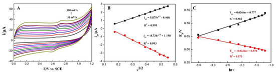 - Laviron, E. General expression of the linear potential sweep voltammogram in the case of diffusionless electrochemical systems. J. Electroanal. Chem. 1979, 101, 19–28. [Google Scholar] [CrossRef]