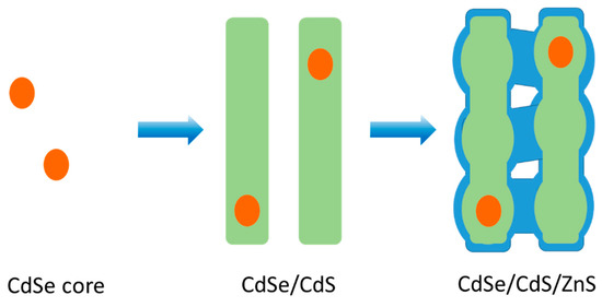 Schematic diagrams of the growth of CdSe/CdS/ZnS QRAs.