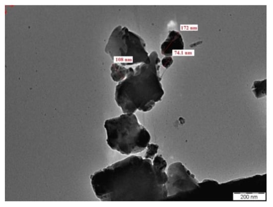 BGWNP contained ellipsoidal nanoparticles, as revealed by TEM imaging (Figure 3). High surface tension and the surface energy of nanoparticles of heightened refinement were believed to be the reason for the aggregation of smaller nanoparticles into larger ones. The catalytic activity of the nanoparticles was enhanced by the broad surface area generated by the small nanoparticles. The obtained nano-crystallite was, on average, 80 nm in size, which was consistent with the nano-crystallite in the compound based on nano-silica. Furthermore, BGWNP displayed fluctuating super-elasticity, with a composition comparable to that observed in other studies.
