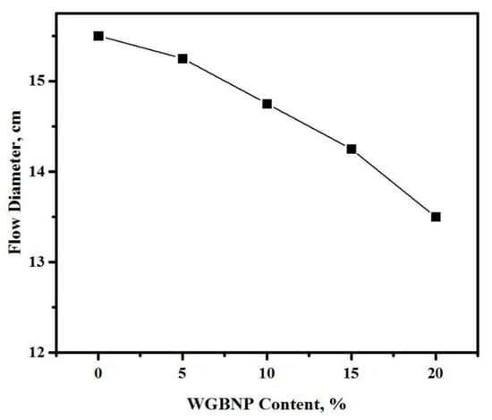 BGWNP content dependent flow diameter variation in prepared AAMs.
