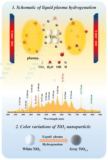 - Panomsuwan, G.; Watthanaphanit, A.; Ishizaki, T.; Saito, N. Water-plasma-assisted synthesis of black titania spheres with efficient visible-light photocatalytic activity. Phys. Chem. Chem. Phys. 2015, 17, 13794–13799. [Google Scholar] [CrossRef]