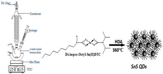 2.2. Synthesis of SnS Nanoparticles with HDA Capping Agent