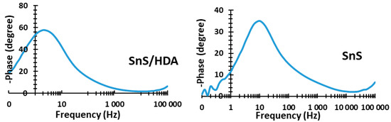 Bode plot spectra of SnS/HDA and SnS nanoparticles.