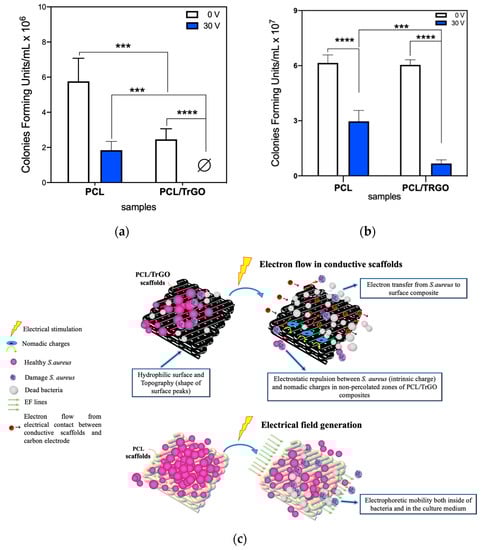 - Zhang, J.; Neoh, K.G.; Hu, X.; Kang, E.-T. Mechanistic insights into response of Staphylococcus aureus to bioelectric effect on polypyrrole/chitosan film. Biomaterials 2014, 35, 7690–7698. [Google Scholar] [CrossRef]