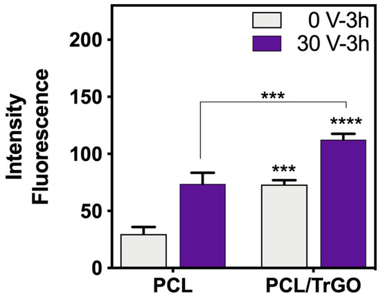 - Arriagada, P.; Palza, H.; Palma, P.; Flores, M.; Caviedes, P. Poly(lactic acid) composites based on graphene oxide particles with antibacterial behavior enhanced by electrical stimulus and biocompatibility. J. Biomed. Mater. Res. Part A 2018, 106, 1051–1060. [Google Scholar] [CrossRef] [PubMed]