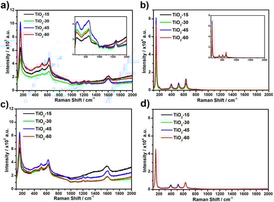 32]. The bands corresponding to glycol, as well as amorphous carbon molecules, are also present. Additionally, no significant difference between the intensity of Raman signal recorded for laser-processed as-anodized TiO