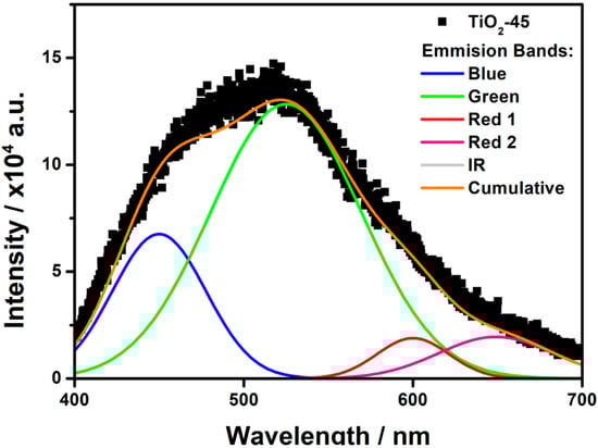 42] have shown that vacuum annealing leads to a generation of n-donors in the form of oxygen vacancies, which results in increased emission at green wavelengths. In turn, the red PL from the recombination of electrons trapped on Ti