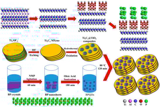 2.2. Synthesis of BPQDs/Ti3C2@TiO2 Composites