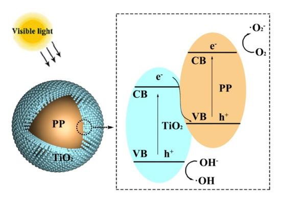 Photocatalytic mechanism of core–shell PP@TiO2 nanosphere.