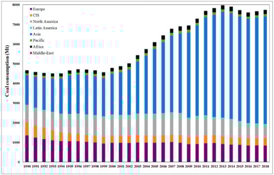 - Global Energy Statistical Yearbook 2019. Available online: https://yearbook.enerdata.net/coal-lignite/coal-world-consumption-data.html (accessed on 22 August 2019).