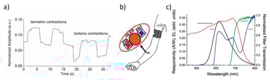 - Khan, Y.; Han, D.; Pierre, A.; Ting, J.; Wang, X.; Lochner, C.M.; Bovo, G.; Yaacobi-Gross, N.; Newsome, C.; Wilson, R.; et al. A flexible organic reflectance oximeter array. Proc. Natl. Acad. Sci. USA 2018, 115, E11015–E11024. [Google Scholar] [CrossRef] [PubMed]