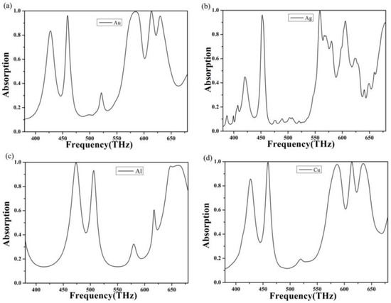 - Qin, F.; Chen, Z.Q.; Chen, X.F.; Yi, Z.; Yao, W.T.; Duan, T.; Wu, P.H.; Yang, H.; Li, G.F.; Yi, Y.G. A Tunable Triple-Band Near-Infrared Metamaterial Absorber Based on Au Nano-Cuboids Array. Nanomaterials 2020, 10, 207. [Google Scholar] [CrossRef] [PubMed]