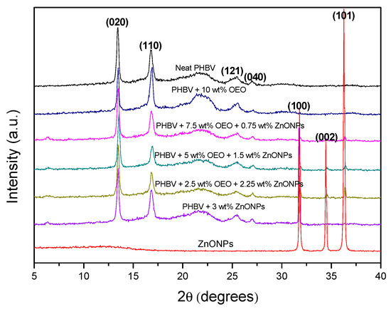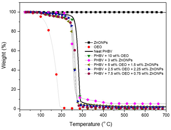 | PHBV + 2.5 wt% OEO + 2.25 wt% ZnONPs | 227.8 ± 2.1 | 261.4 ± 1.1 | 33.46 ± 0.7 | 3.77 ± 1.0 |
