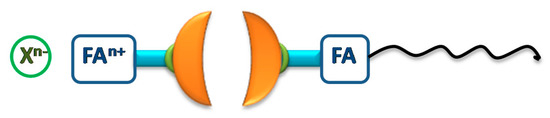 The functionalizing agent (FA) is grafted to the extremity of the long alkyl chain that ensuring steric repulsion.