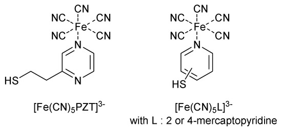 - Nunes, F.S.; Bonifacio, L.D.S.; Araki, K.; Toma, H.E. Interaction of 2- and 4-Mercaptopyridine with Pentacyanoferrates and Gold Nanoparticle. Inorg. Chem. 2006, 45, 94–101. [Google Scholar] [CrossRef] [PubMed]