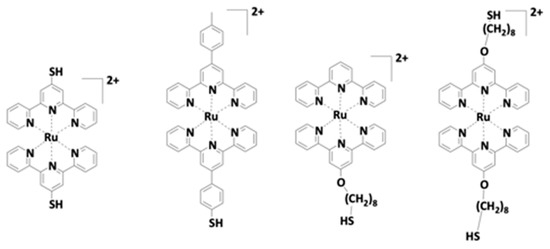 - Ito, M.; Tsukatani, T.; Fujihara, H. Preparation and characterization of gold nanoparticles with a ruthenium-terpyridyl complex, and electropolymerization of their pyrrole-modified metal nanocomposites. J. Mater. Chem. 2005, 15, 960–964. [Google Scholar] [CrossRef]