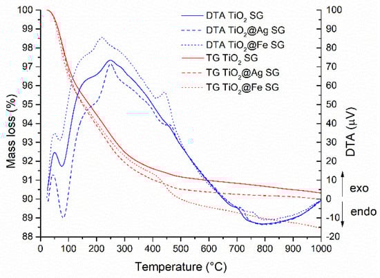 Thermal analysis (DTA and TG) corresponding to the samples obtained by the sol-gel (SG) method.