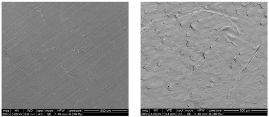 Typical SEM images of poly(ε-caprolactone) (PCL) (left) and PCL/Fe3O4 (right) substrates. Scale bar: 500 μm.