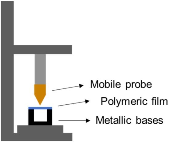 Schematic representation of the texture analyzer setup used to study the mechanical properties of films by recording the force at the breaks of films.