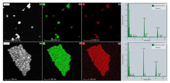 High-angle annular dark field (HAADF)–scanning transmission electron microscopy (STEM) imaging and energy-dispersive X-ray spectroscopy (EDX) analyses were performed using a 200 kV Talos F200S G2 TEM equipped with an HAADF detector and a Super-X EDS detector consisting of 2 windowless silicon drift detectors (SDD), using Velox software (Version 2.10, Thermo Fisher Scientific, Eindhoven, The Netherlands). STEM images were recorded with a scan size of 1024 × 1024 pixels, a dwell time of 20 µs, a probe convergence angle of 7.5 mrad, and a camera length of 160 mm. EDX spectra were recorded during 10 s with a 20 keV energy range, 5 eV dispersion, and optimized shaping time. Spectral imaging was performed using a live time of 7 min and 36 s in which 20 frames were recorded.