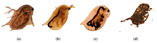 In conformity with this trend, in the present review, we used the term “SSRET organisms” for organisms suitable for simple and rapid ecotoxicity testing. We considered as SSRET organisms those organisms that are superior not from an evolutionary, taxonomical or complexity point of view, but from the point of view of suitability for ecotoxicity assessment. This term was assigned to species of plants (algae and vascular plants) and animals (only invertebrates) that are suitable due to their mechanisms of reproduction, size, culture method and also the lack of a proper ethical regulation, including only species that are not on the International Union for Conservation of Nature (IUCN) Red List [5] or protected by law. Only ecotoxicity assays that use SSRET organisms were studied because these give advantages like short culture period, are cheaper to maintain, need smaller laboratory space, etc. The organisms used in standard guidelines for ecotoxicity testing also include SSRET organisms from various categories such as those described in Figure 4.