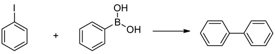 The Suzuki-Miyaura cross-coupling test reaction between the iodobenzene and phenylboronic acid.