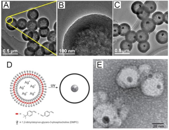 - Shmakov, S.N.; Pinkhassik, E. Simultaneous templating of polymer nanocapsules and entrapped silver nanoparticles. Chem. Commun. 2010, 46, 7346–7348. [Google Scholar] [CrossRef]