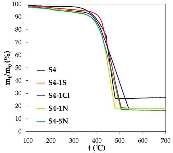 All the catalysts obtained after the acid treatment are characterized by a decrease in the average crystallite sizes from the initial 2.8 to 2.6–1.8 nm (Table 3). The most significant decrease in this parameter compared to the initial sample is also observed for sample S4-5N obtained after processing the starting material in the most aggressive medium. Probably under conditions of rapid structural restructuring caused by the intense corrosion of copper, the crystallites of this material acquire the highest defectiveness, which makes an additional contribution to the peak broadening in the X-ray diffraction pattern (Figure 6b) and underestimates their average size, calculated by the Scherrer equation.