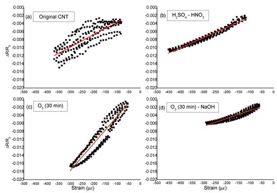 Del Moral, B.; Martín Gullón, I.; Navarro, R.; Galao, O.; Baeza, F.J.; Zornoza, E.; Calderón, B.; Rodríguez, I.; Arnaiz, N.; Romero Sánchez, M.D.; et al. The Effect of Different Oxygen Surface Functionalization of Carbon Nanotubes on the Electrical Resistivity and Strain Sensing Function of Cement Pastes. Nanomaterials 2020, 10, 807. https://doi.org/10.3390/nano10040807