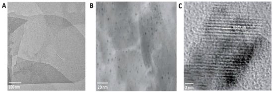 TEM images of (A) rGO and (B) rGO-CuO NPs. (C) EDS pattern of rGO-CuO NPs.