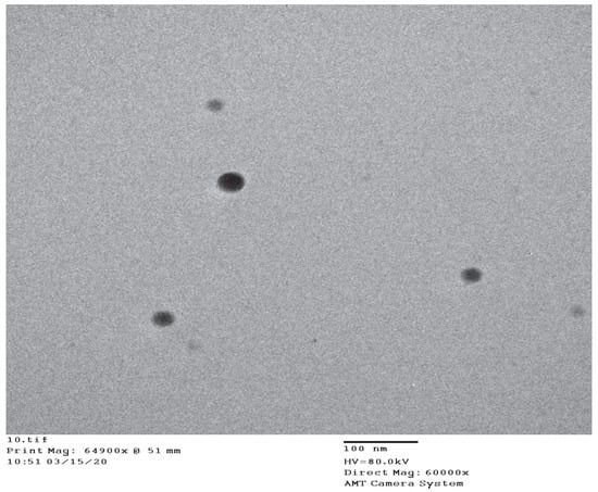 Droplet morphology of optimized nanoemulsion (NE4) system under transmission electron microscopy.