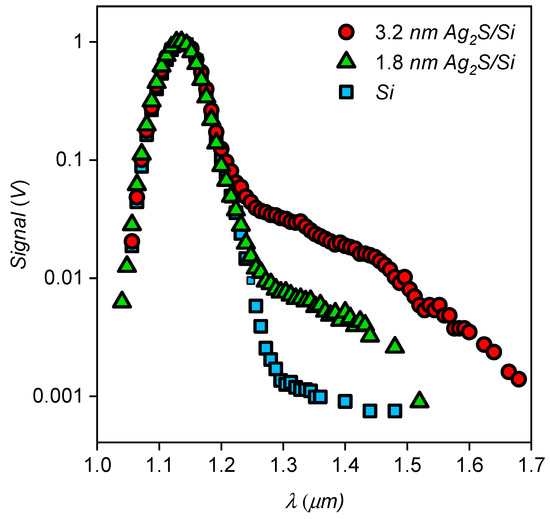- Tretyakov, I.; Shurakov, A.; Perepelitsa, A.; Kaurova, N.; Sergey, S.; Zilberley, T.; Ryabchun, S.; Smirnov, M.; Ovchinnikov, O.; Goltsman, G. Room Temperature Silicon Detector for IR Range Coated with Ag2S Quantum Dots. Phys. Status Solidi Rapid Res. Lett. 2019. [Google Scholar] [CrossRef]