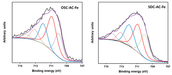 Fitting of the 2p3/2 spectral region of OSC-AC-Fe and SDC-AC-Fe samples.