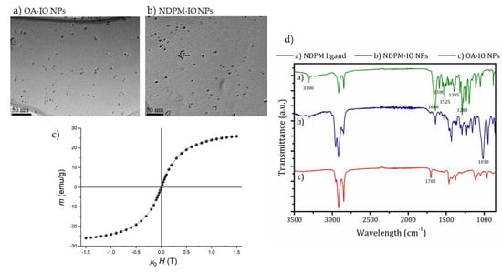 - Bixner, O.; Lassenberger, A.; Baurecht, D.; Reimhult, E. Complete Exchange of the Hydrophobic Dispersant Shell on Monodisperse Superparamagnetic Iron Oxide Nanoparticles. Langmuir 2015, 31, 9198–9204. [Google Scholar] [CrossRef]