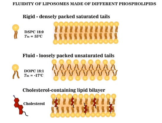 Fluidity | DOPC > DPPC > DSPC | DOPC/Chol > DSPC/Chol > DPPC/Chol |