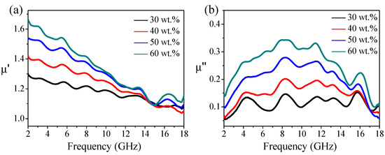 3.3. Complex Permeability of Fe(G)/Paraffin Composites