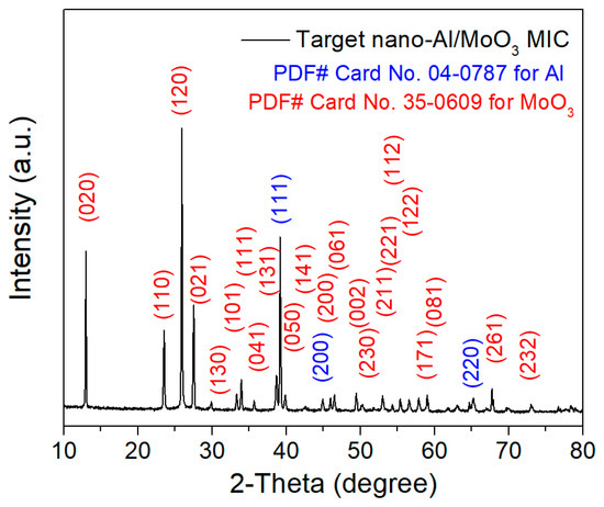 Typical X-ray diffractometer (XRD) pattern of the as-obtained nano-Al/MoO3 MIC.