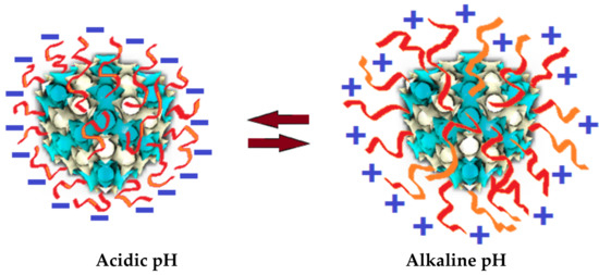 The use of polymers, polyamino acids and proteins containing ionizable amine and carboxylic groups, and undergoing protonation–deprotonation in specific pH ranges, has recently emerged as a strategy for the development of cubosome nanocarriers and cubic phases with pH-responsive characteristics.