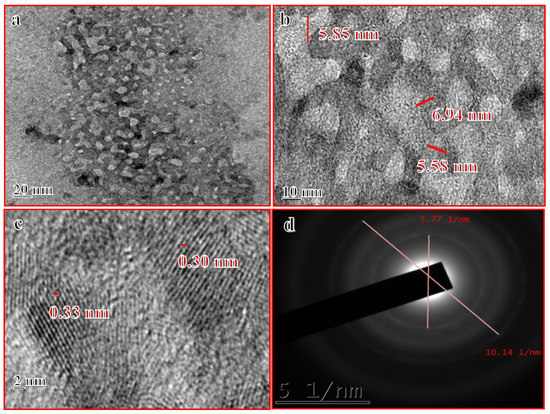 (a–d) HRTEM images of Mn:ZnSQDs.