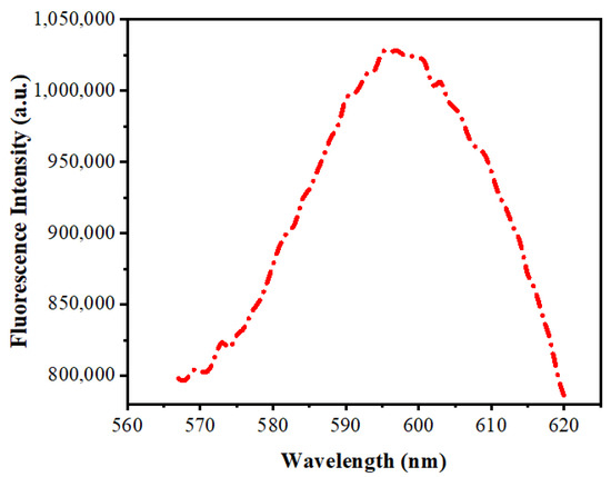 Figure 6 depicts fluorescence spectra of Mn:ZnS QDs. There is a yellow-orange emission at about 598 nm. The 4T1–6A1 transition in the 3d shell of Mn2+ ions is the reason for this emission. It is due to the proficient transfer of energy from the ZnS to the doped Mn2+ and is assisted by the mixed electronic states [50]. Whilst the Mn2+ ion is incorporated in the lattice of ZnS, the cationic sites get substituted, and there occurs a mixing of s–p electrons of ZnS and the d electrons of doped Mn2+, making the 4T1–6A1 forbidden transition partly possible, which leads to the yellow-orange emission of the Mn2+ ions.
