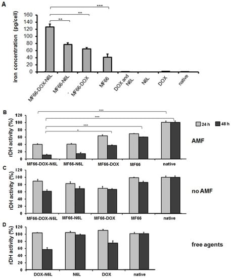 Nevertheless, a strong ILP reduction occurred during immobilization of the bi-functionalized (MF66-DOX-N6L) MNPs in BT474 cells, but these MNPs still exhibited a good heating potential (Figure 1B).