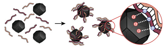 The history of studying the interaction between nucleic acids and nanoparticles (NPs) has been around for many decades. The focus of works on this subject has continuously shifted from topic to topic, covering such fields as biosensing, nanoassembly, targeted delivery, and gene therapy [1,2,3]. However, limited studies were directly dedicated to assessing the impact of nanoparticles of different materials on RNA hybridization. More specifically, a tempting question is the degree of the hybridization of double-stranded siRNA after interaction with inorganic nanoparticles.