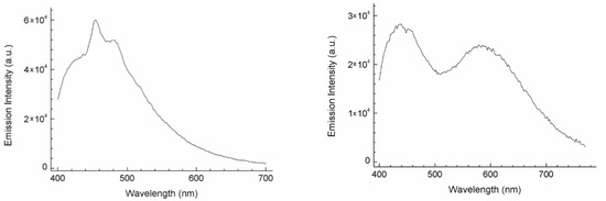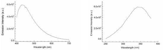 (left) Emission and (right) excitation profiles of untreated cotton textile.