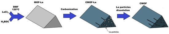 Scheme of lanthanum-based metal–organic framework (MOF-La) and carbonized metal–organic framework before (CMOF-La) and after (CMOF) hydrochloric acid purification.