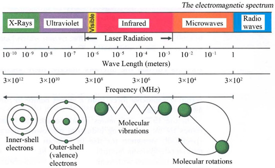 The electromagnetic spectrum showing characteristics of microwaves. Reprinted with permission from [428], Copyright © 2014 Rana et al. and Open Access Library Journal, Article licensed under a CC BY 4.0, https://creativecommons.org/licenses/by/4.0/.